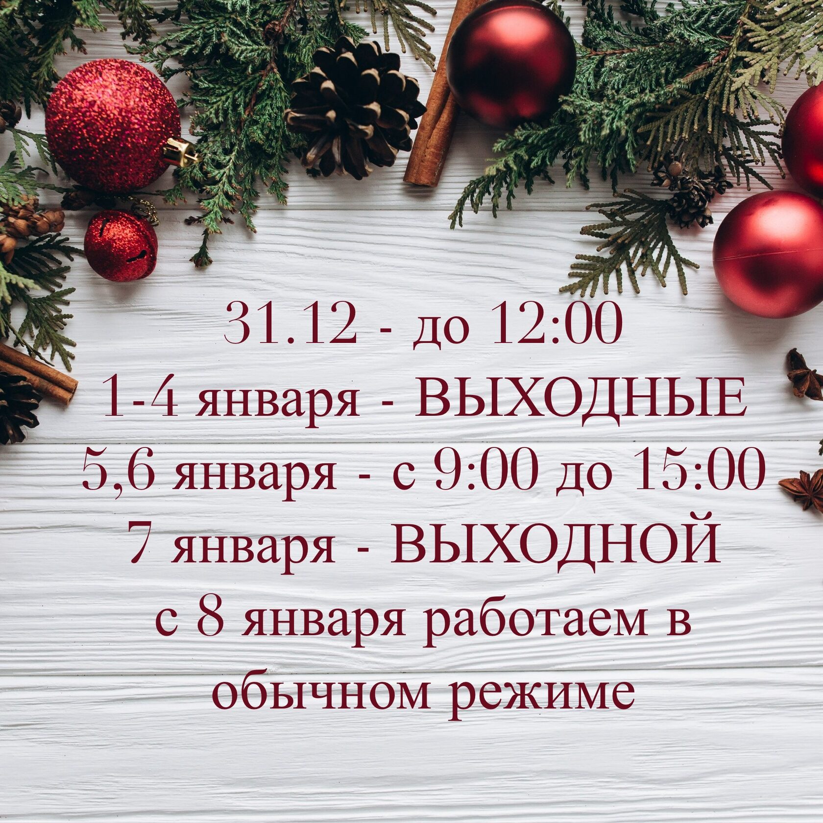 Режим работы в новогодние праздники